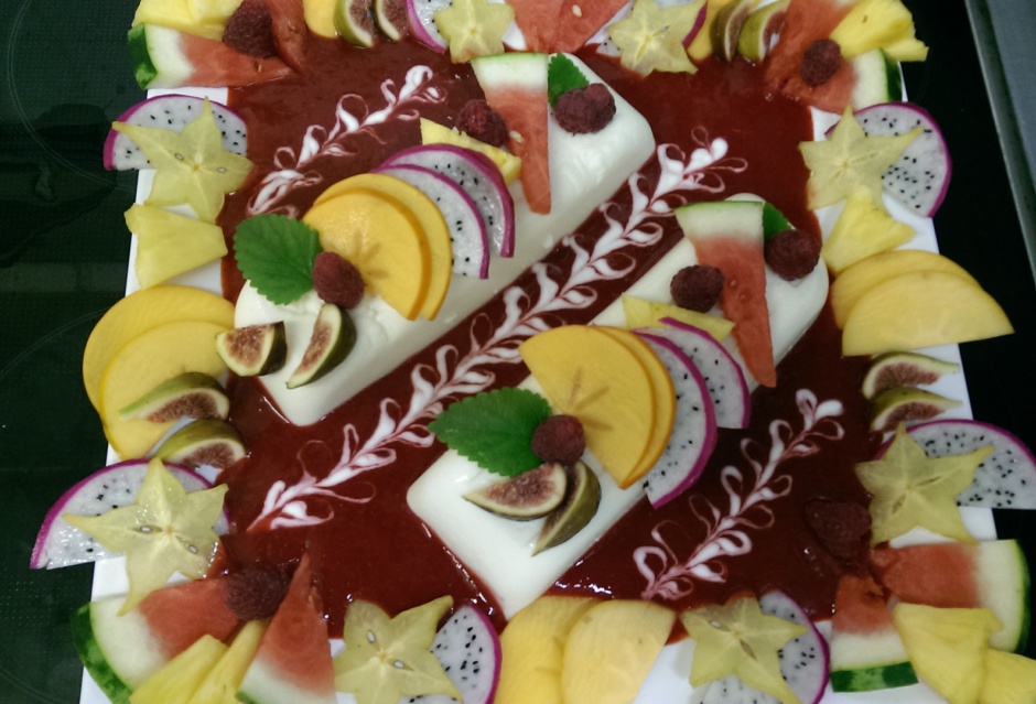 Maracuja-Mousse mit exotischen Früchten umlegt |